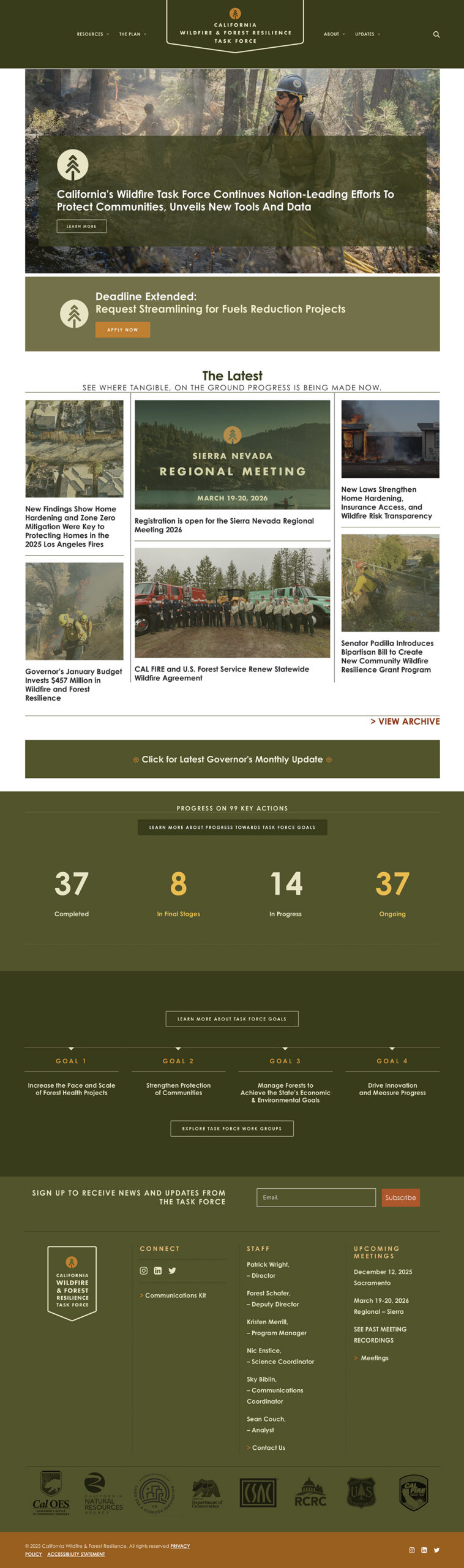How do you respond to a force of nature? That’s the unique challenge facing California at the moment as a near perfect storm of climatic and human-caused conditions have brought the threat of devastating wildfire and its far-reaching effects to the doorstep of nearly everyone in our state, and beyond. In a response commensurate to the challenge, the California Wildfire & Forest Resilience Task Force has brought together an unprecedented coalition of the best available resources on the front lines of preventing catastrophic wildfires by creating healthier, more sustainable natural environments. It’s a comprehensive, coordinated approach that goes to the heart of the full range of challenges we face. It’s an all-hands-on-deck, proactive effort that is already showing progress in protecting people and property while improving the health and resiliency of the forests we love and rely on for a sustainable future. There’s a role for everybody to do their part, so we hope you’ll join us on this journey to transformhow we safely and sustainably coexist with fire.